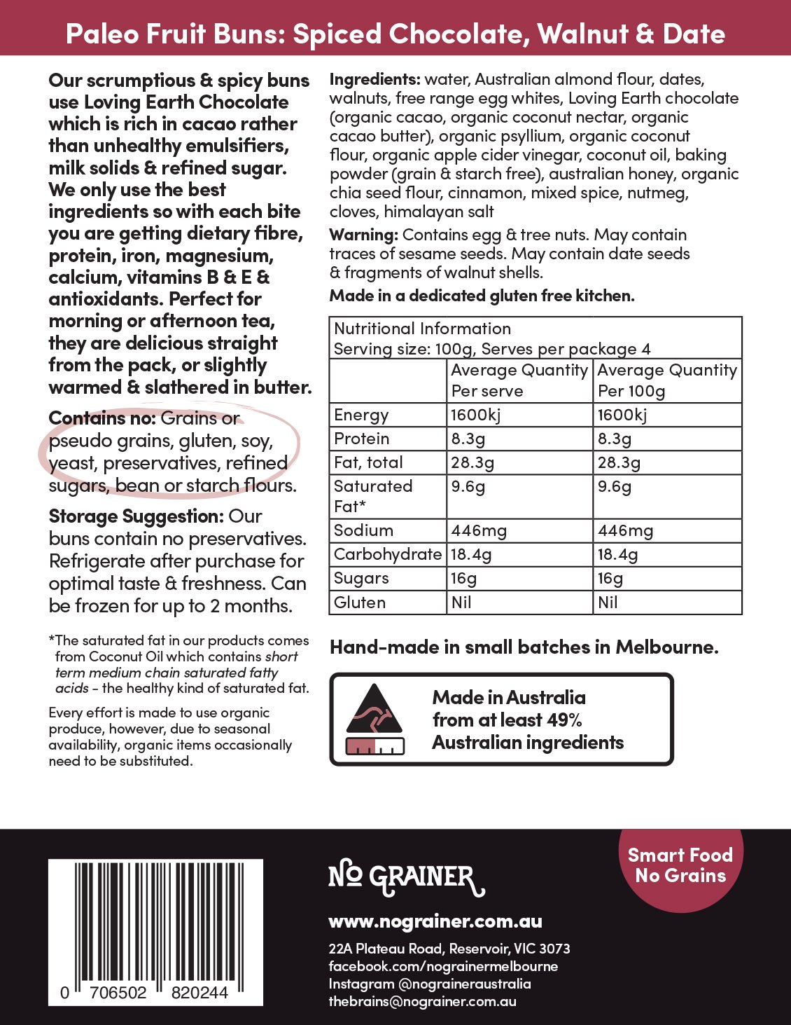 Our scrumptious & spicy buns use Loving Earth Chocolate which is rich in cacao rather than unhealthy emulsifiers, milk solids & refined sugar.