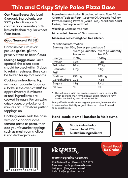 With their light and crispy texture and subtle nutty flavour, they complement any topping to create a truly delicious pizza experience that won’t leave you feeling bloated.